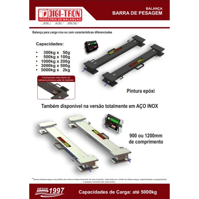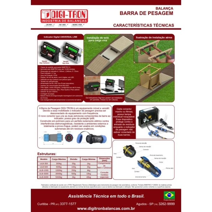 As Balanças em Barras de Pesagem DIGI-TRON foram projetadas especialmente para a pesagem de cargas vivas, podendo também serem aplicadas em sistemas de pesagem... Mais detalhes