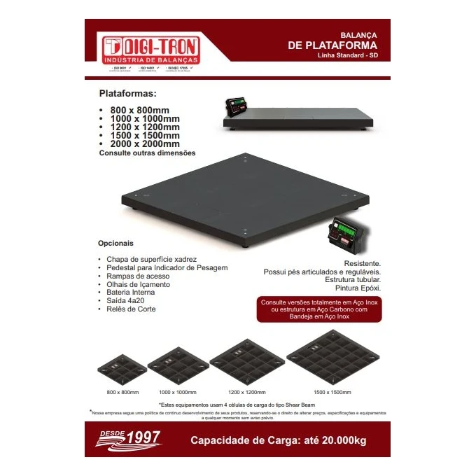 - Grau de Proteção IP-65 (Módulo de Pesagem)